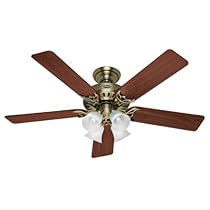 Hunter 20182 Review: Hunter 20182 52 Inch Studio Series Ceiling Fan Antique Brass with Walnut/Medium Oak Blades. I ordered this for our bedroom remodel. As with all ceiling fans I had to install a stronger brace to support the weight.Pass & Seymour 22200 Retrofit Reiker Fan Brace with 25-Cubic-Inch Electrical Box The included bracket comes with a loop and the top of the fan motor has a hook. so the fan can be wired without constantly supporting it with your third hand. That sure makes for a quick install. I ended up getting a Hunter remote/module with it so I can turn ... Full reviews at amazon »