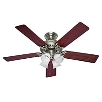 Hunter 20183 Review: Hunter 20183 52 Inch Studio Series Ceiling Fan Brushed Nickel with Cherry/Maple Blades. I have purchased Hunter fans before and have been extremely please with the quality and the quiteness of their fans.This has to be the best looking one yet and it runs so smooth.Whisper quiet,I love that.The lighting is a little dim just because of government regulations.I plan to do research and see if I can go with a little higher wattage.The fan is also in a rather large room.I used a downrod and it does not have the slightest wobble.The fan does have excellent airflow and even with the low ... Full reviews at amazon »