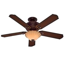 Hunter 23958 Review: Hunter Fan 23958 52-Inch Regal Oak Ceiling Fan, Leather Brown. Good fan for a medium size bedroom or living room. The look is elegant. The color is a deep brown antique finish, with a tea stained light fixture. The fan looks good with gold or brown room accents. The wiring allows for installation with 1 wall switch for turning the fan on/off AND 1 wall switch for turning the light on/off. That is a very convenient feature for a bedroom especially. Installation was easy & the fan provides a good amount of air flow. This is a good buy for ... Full reviews at amazon »